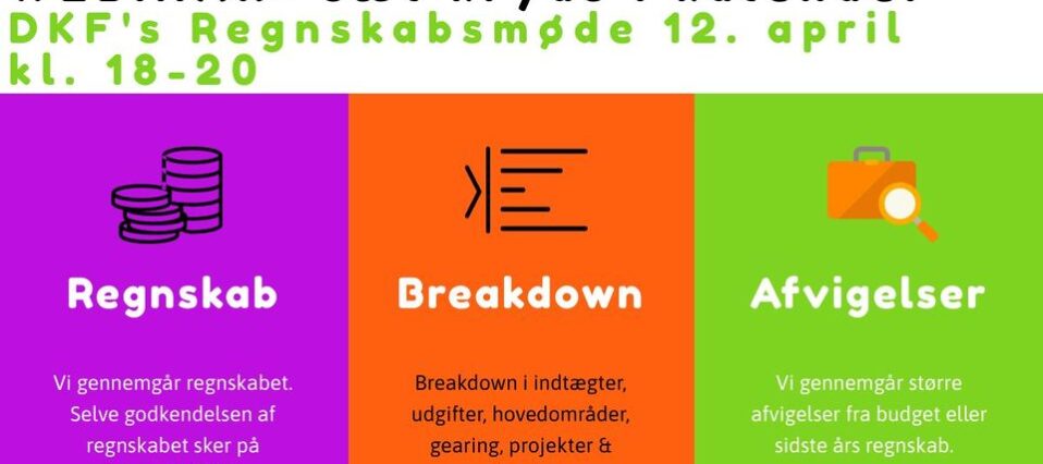 Mandag den 12. april kl. 18 præsenteres regnskabet på et webinar. Det er fri adgang til at deltage. https://meet.google.com/kdn-csan-esi