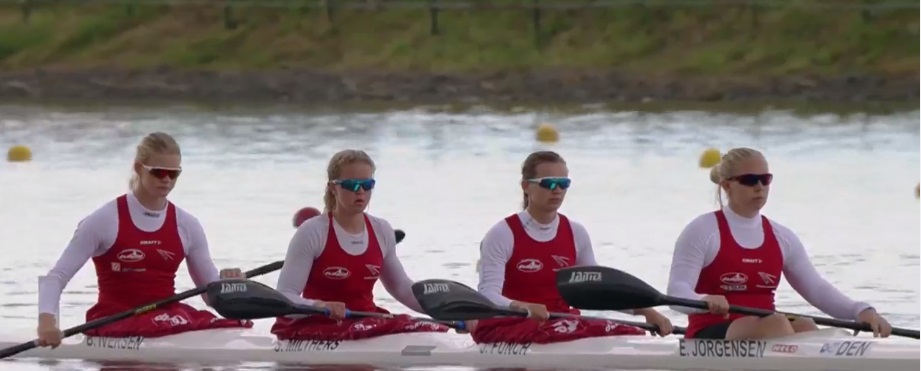 Herrernes firerkajak med den nyslåede bronzevinder over 500 meter enerkajak, Vicor Gairy Aasmul, ombord sammen med Nicolai Winther, Magnus Sibbersen og Rasmus Alsbæk, roede en tredjeplads hjem i indledende heat over 500 meter og skal nu over en semifinale søndag i bestræbelserne for avancement til finalen.